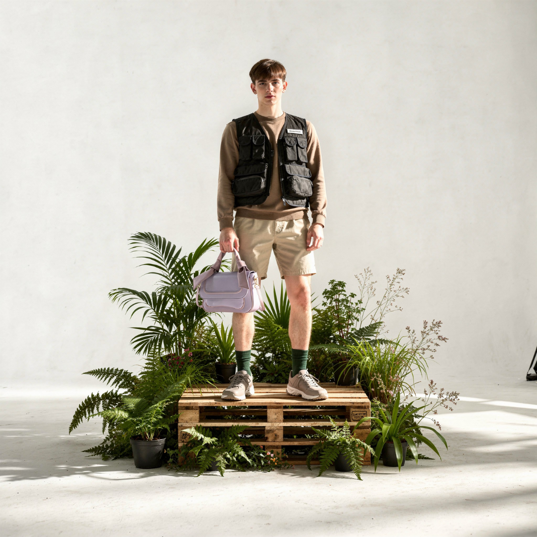 - Design: Structured rectangular silhouette with contrast panel detailing for a sophisticated style.